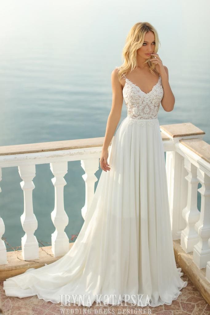 Fließendes Brautkleid mit Spitze und Chiffonrock