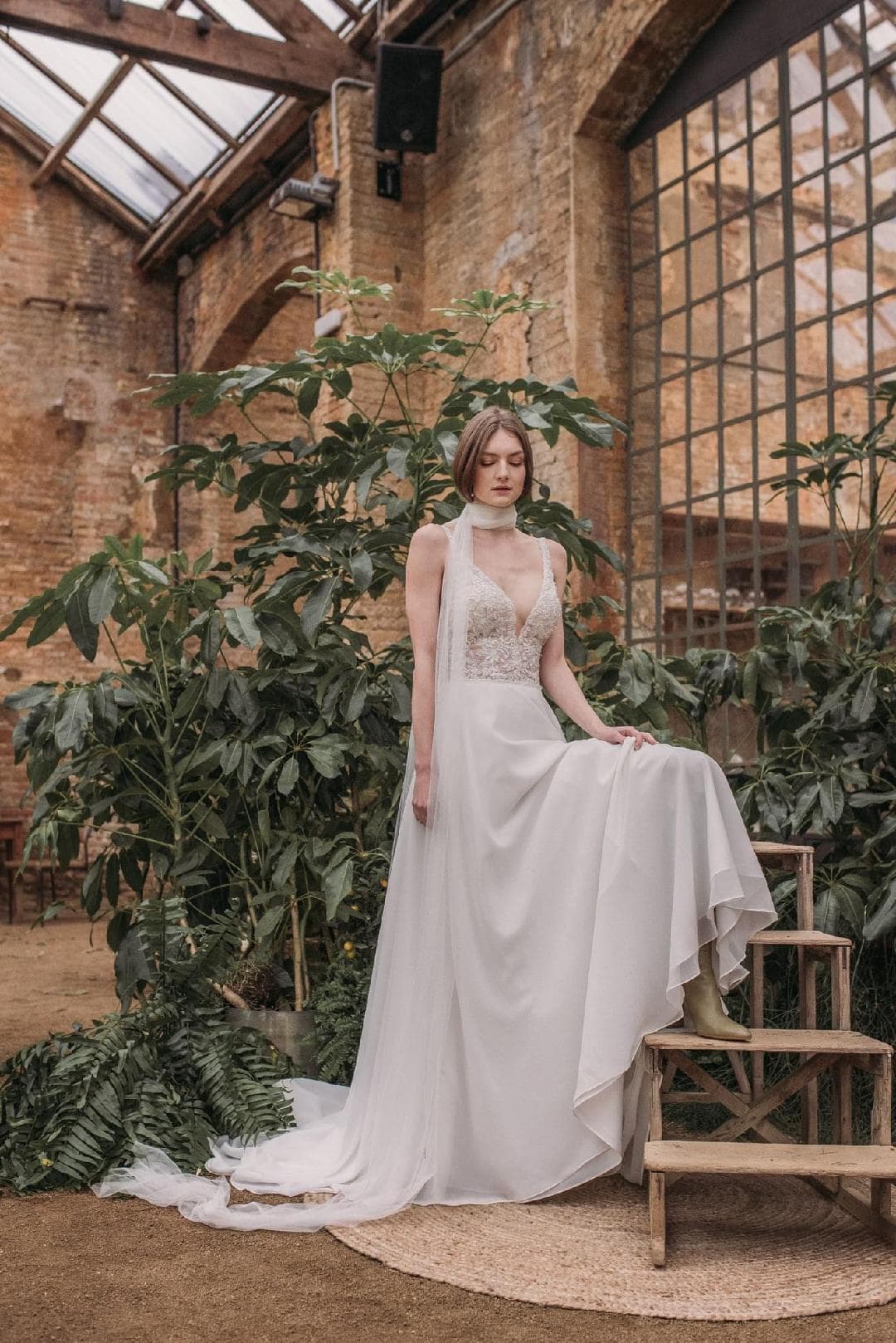 Fließendes Brautkleid mit Spitze und Chiffonrock